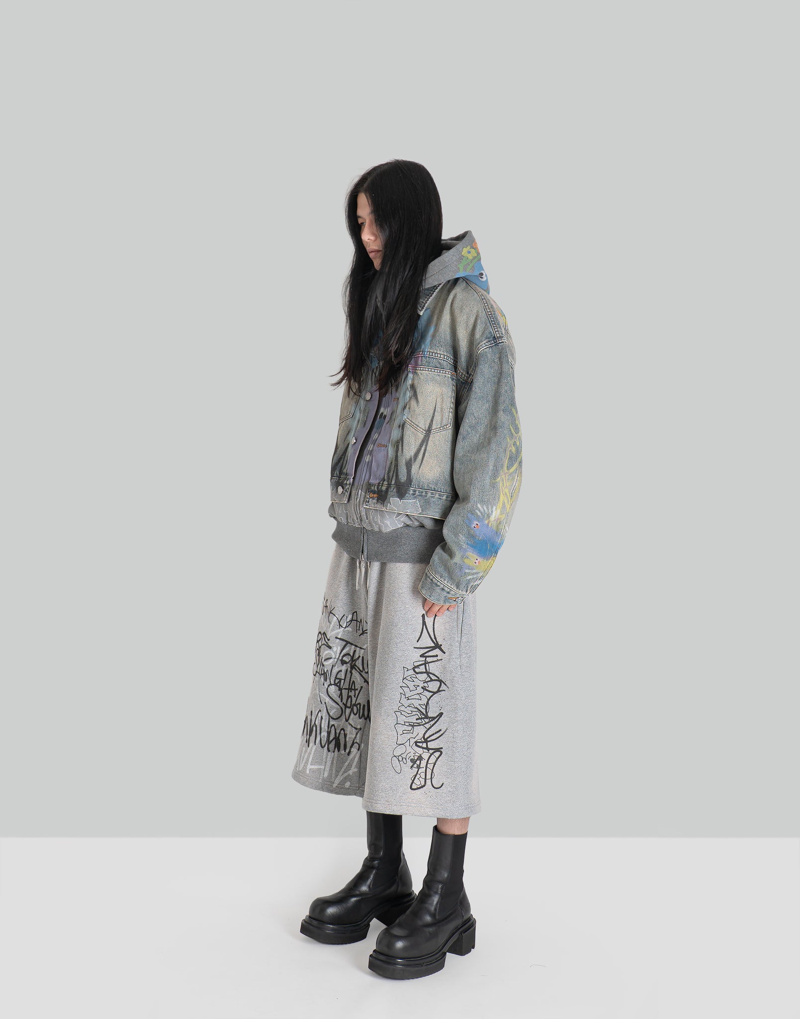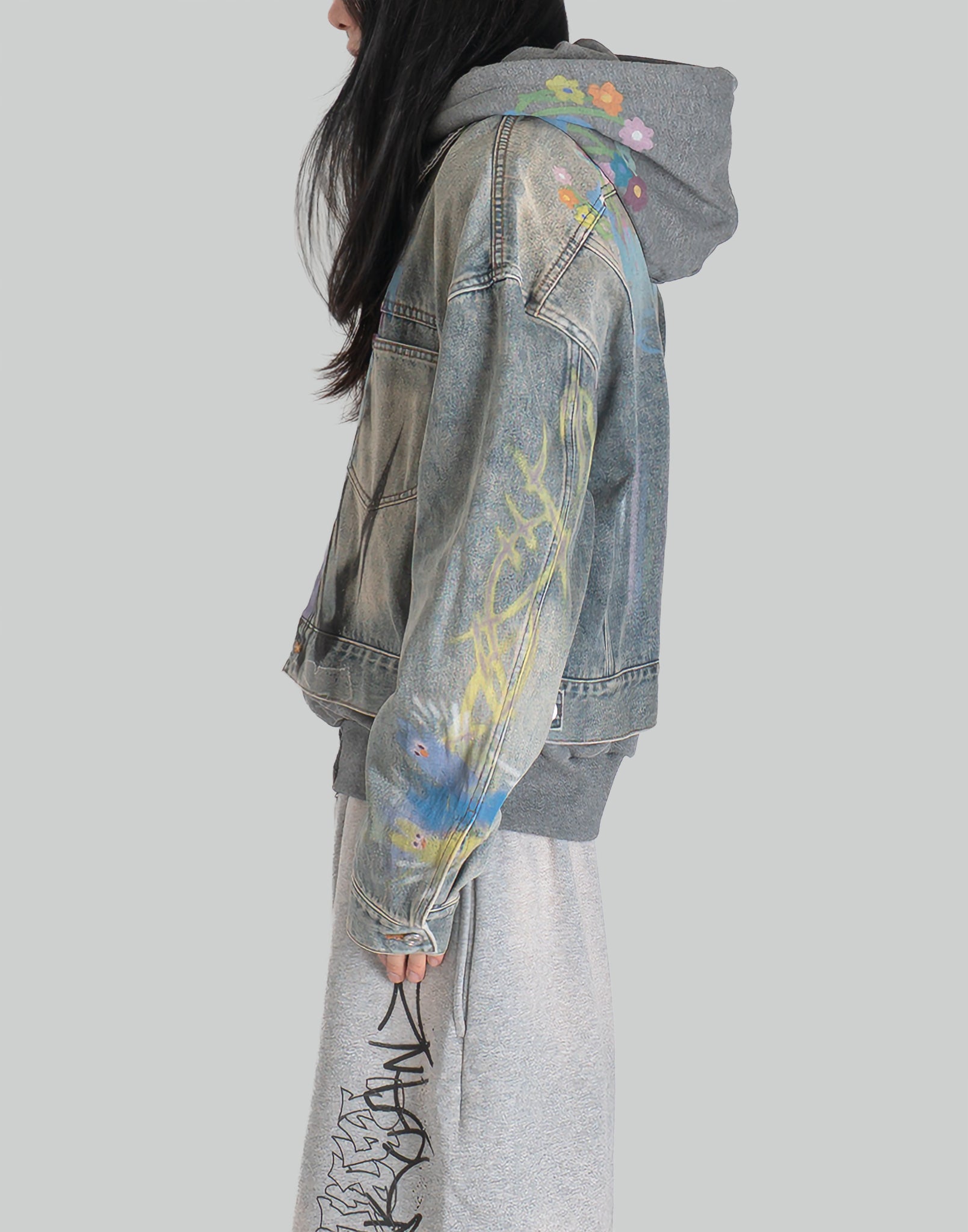 GRAPHIC PRINT UNISEX WASHED DENIM JACKET