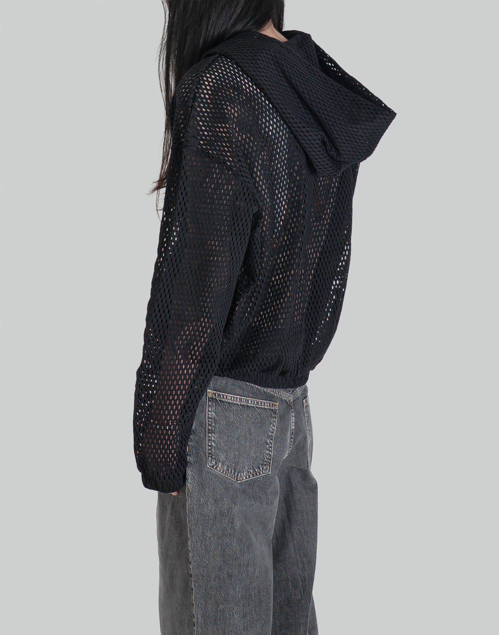COTTON MESH ZIP-UP HOODIE