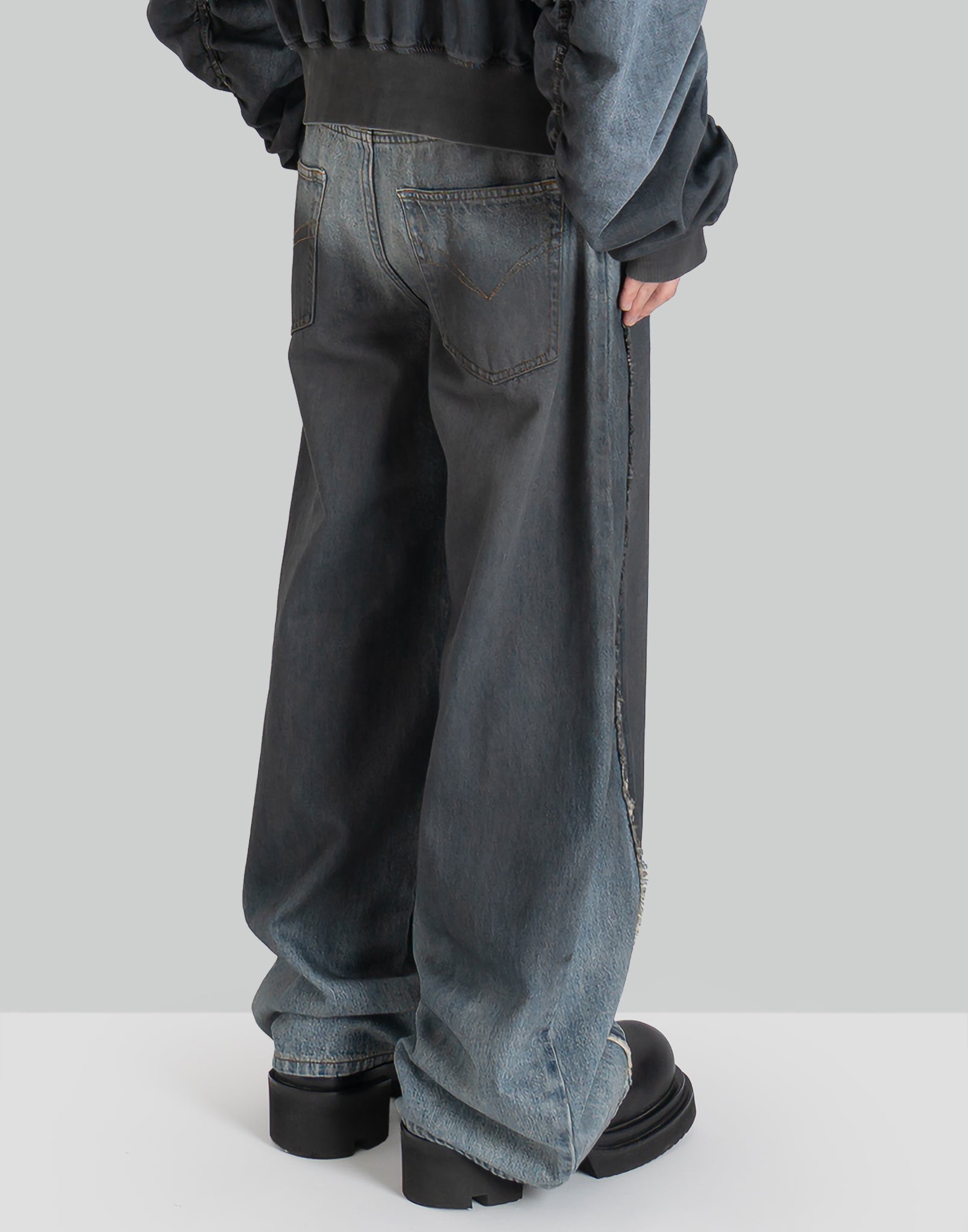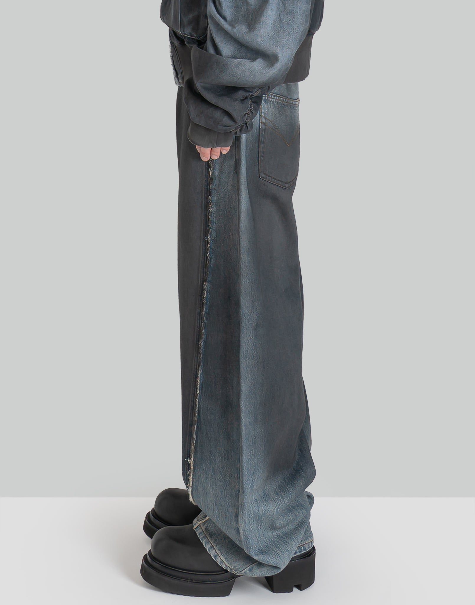 DOUBLE WAIST GRADIENT INDIGO DENIM TROUSERS