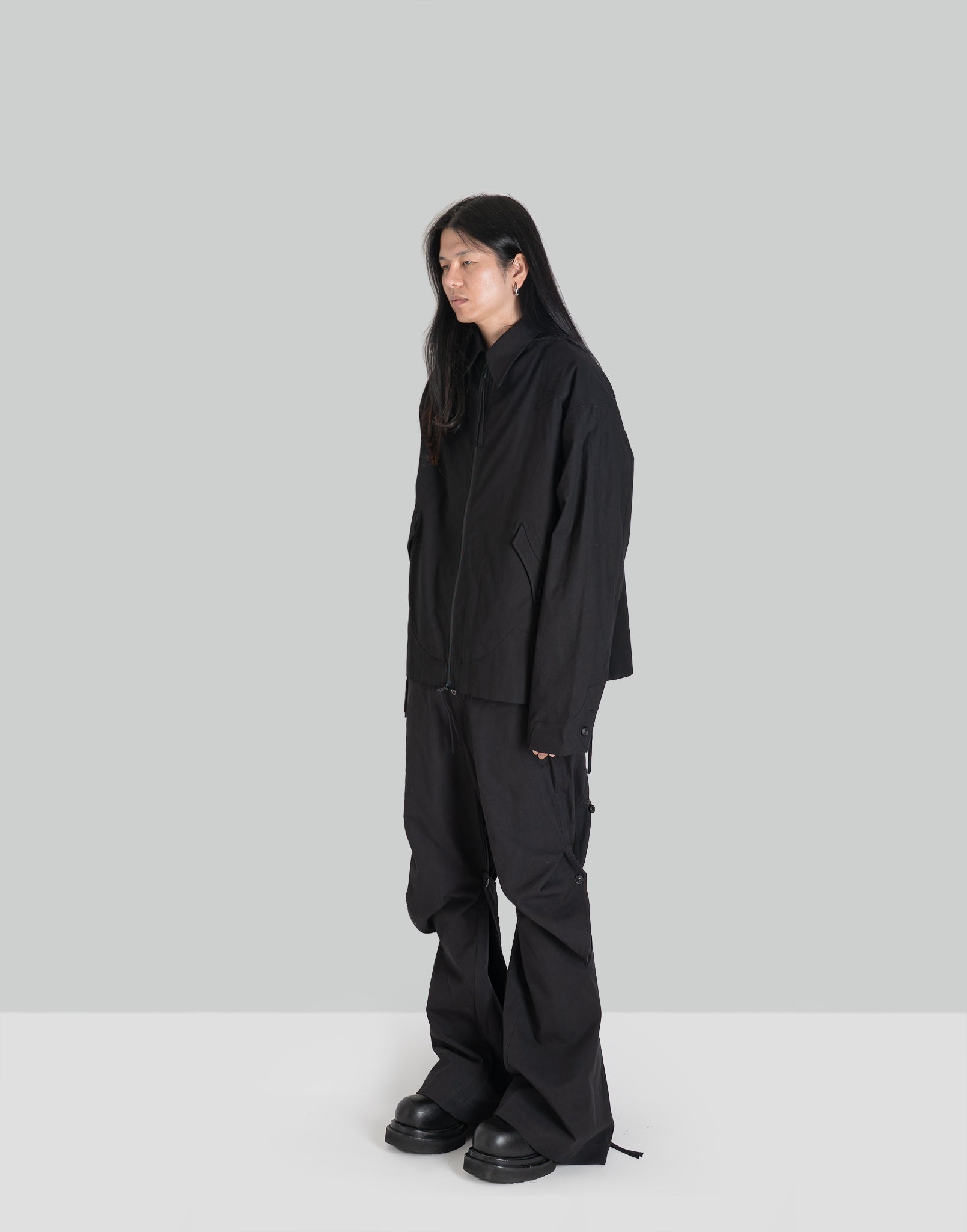 COLOR : BlackSIZE :M(48), L(50)METERIAL : 68% COTTON, 32% POLYESTER / 100% COTTONM Length 111 Shoulder Width 68 Chest 139 Sleeve Length 57L Length 114 Shoulder Width 70 Chest 141 Sleeve Length 59 (cm)Model is 171cm / 54kg and wears...