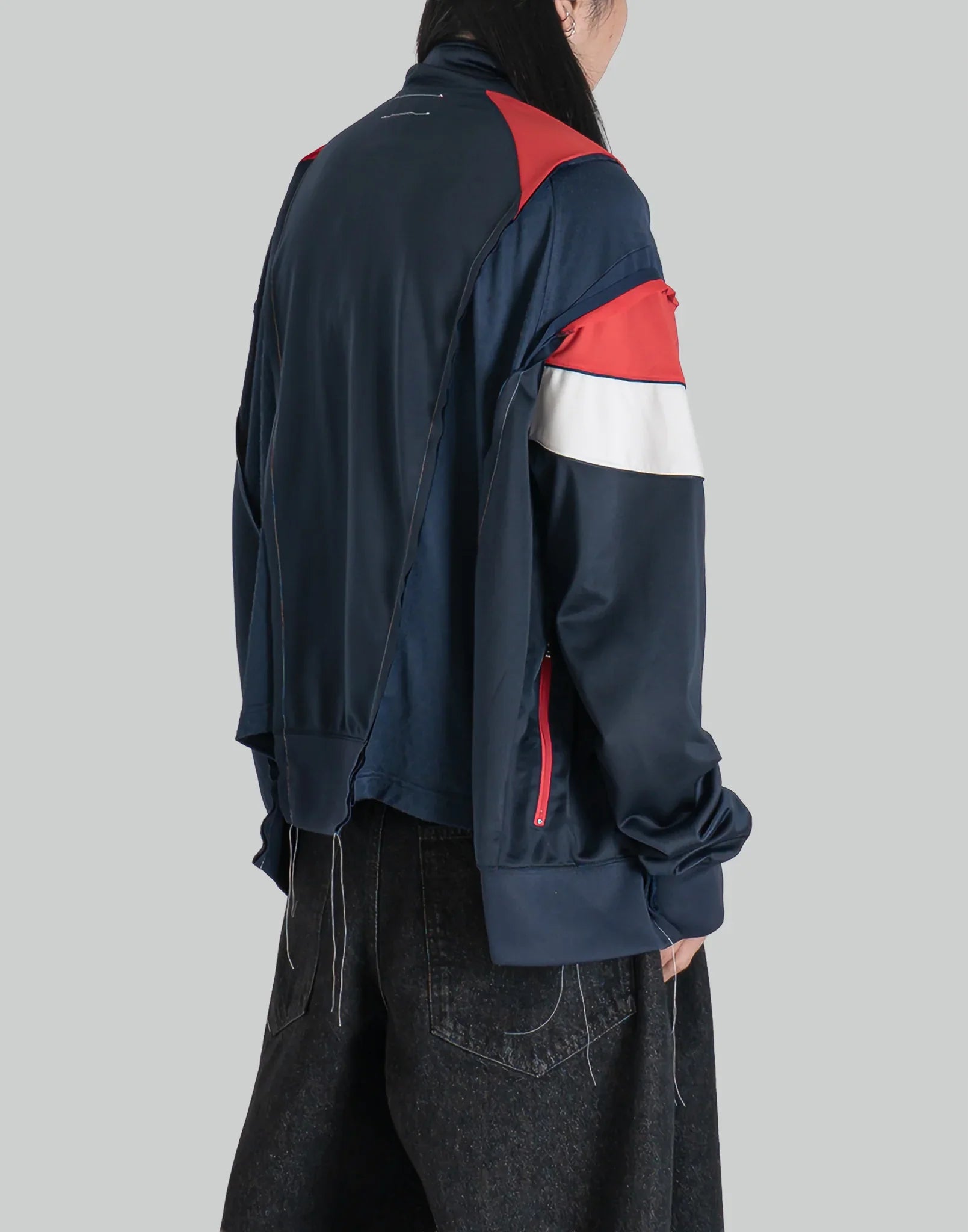 COLOR : AssortSIZE : OSMETERIAL : 100% POLYESTEROS Length 68 Shoulder Width 61 Chest 153 Sleeve Length 65 (cm)Model is 171cm / 54kg and wears size OS.DC-NS-BL-02-03Docking JKT reconstructed after dismantling two different tracks jkt. This item is fun with a wide silhouette...