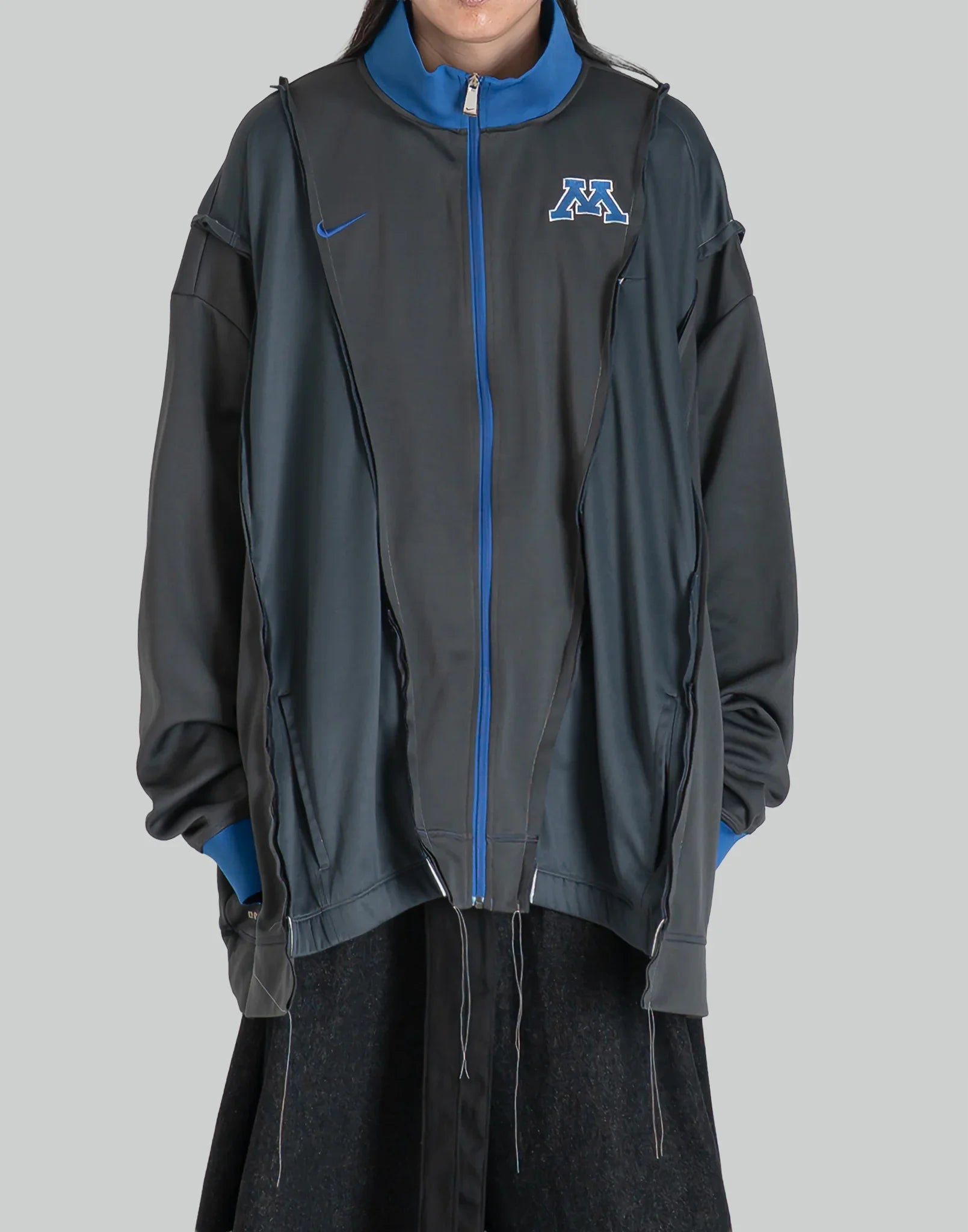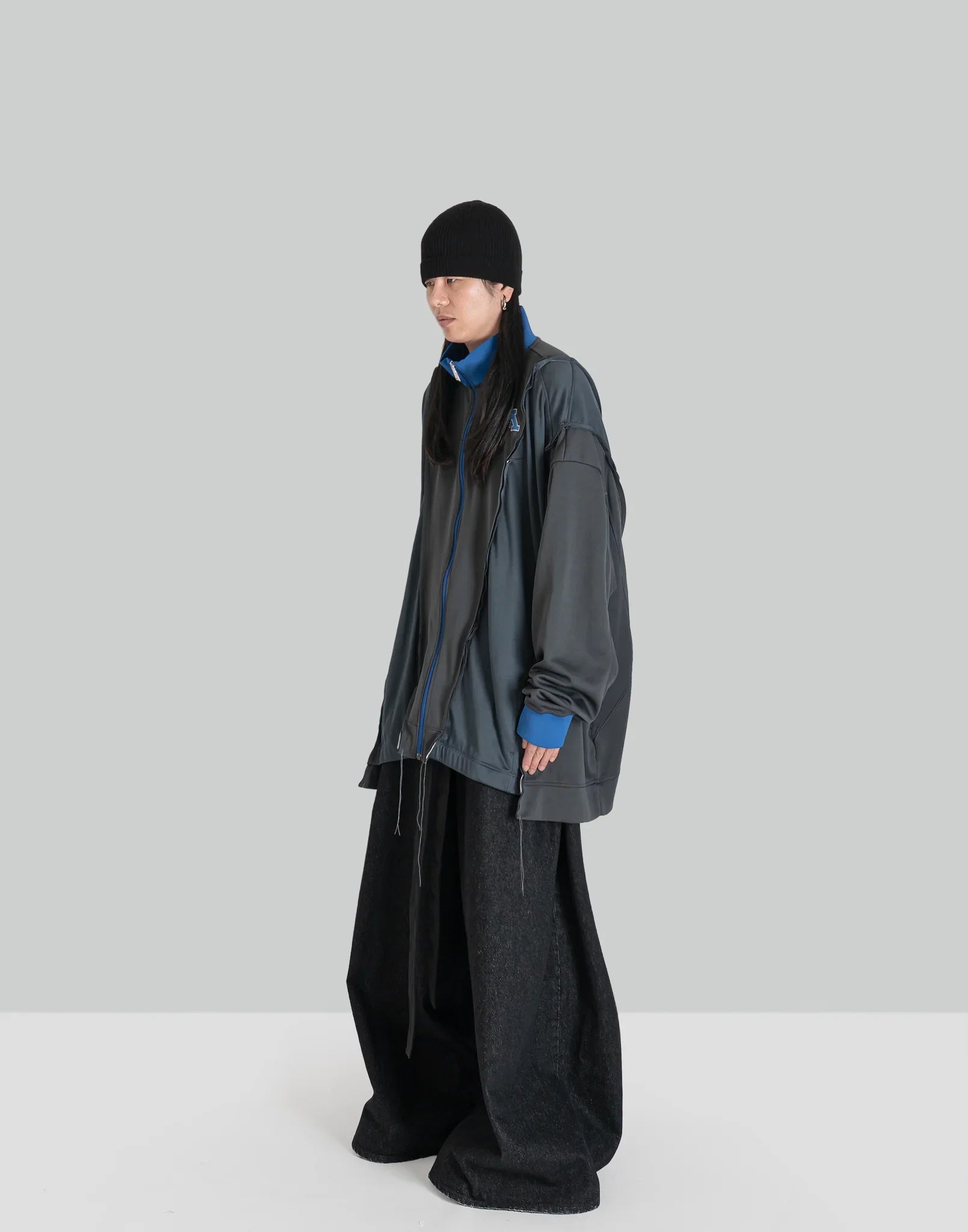 COLOR : AssortSIZE : OSMETERIAL : 100% POLYESTEROS Length 68 Shoulder Width 61 Chest 153 Sleeve Length 65 (cm)Model is 171cm / 54kg and wears size OS.DC-NS-BL-02-03Docking JKT reconstructed after dismantling two different tracks jkt. This item is fun with a wide silhouette...