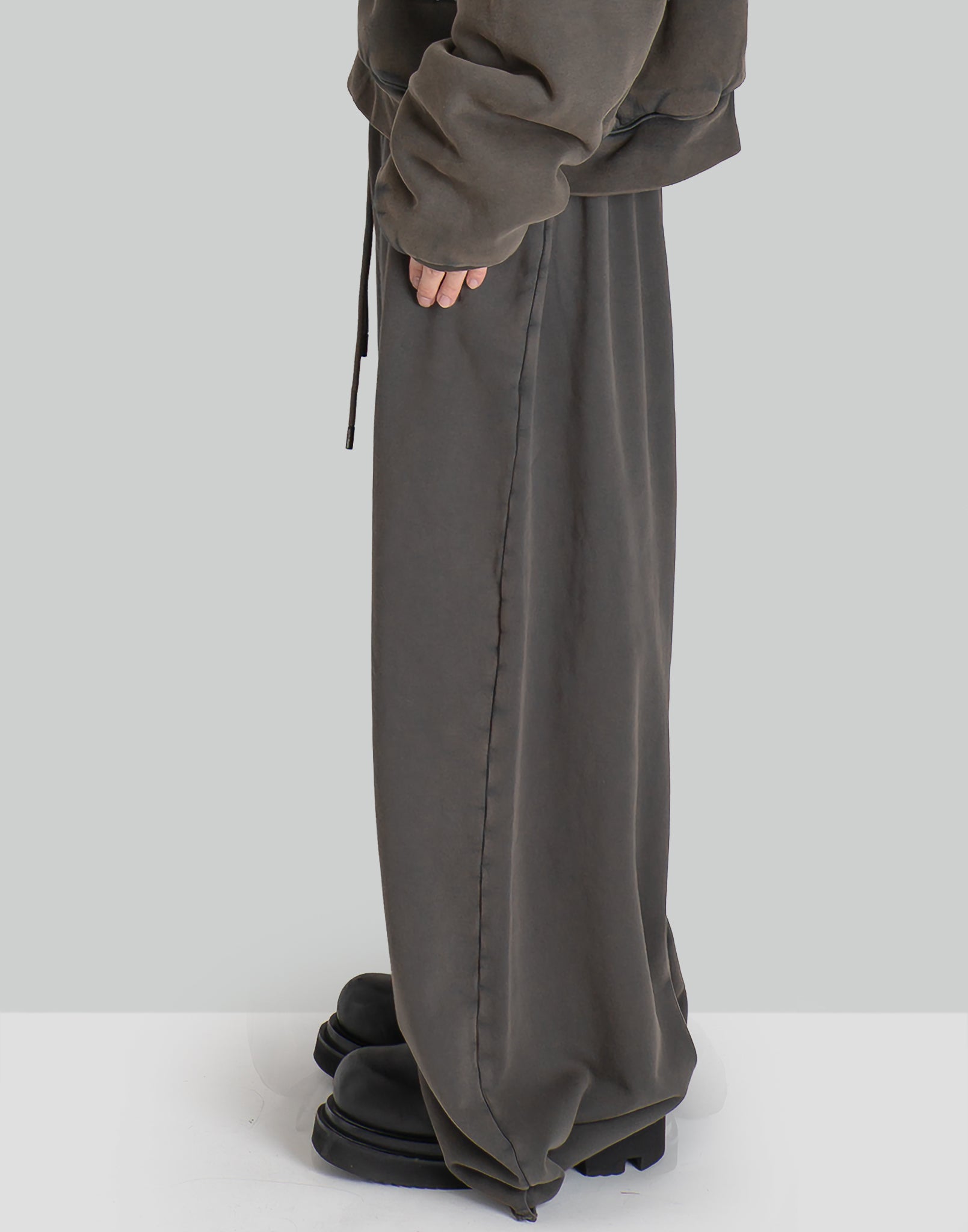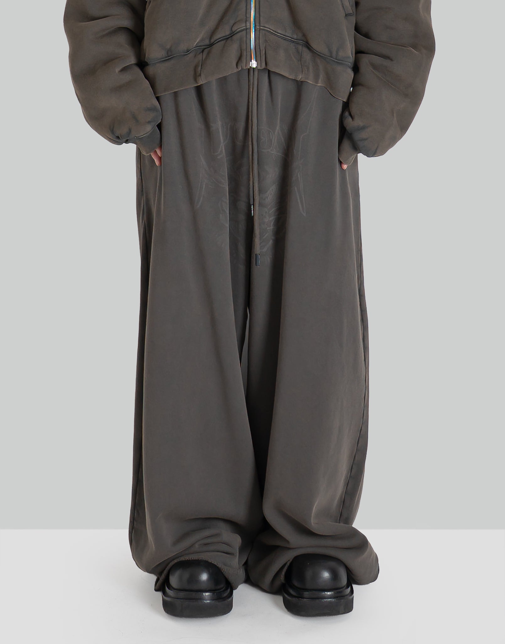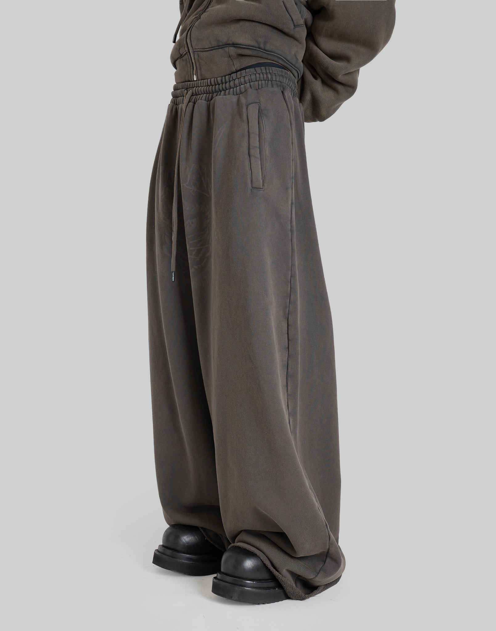 COLOR : Outcast GreySIZE : 28METERIAL : 100% COTTON28 waist 72 crotch 72 total length 108 thigh width 49 (cm)Model is 171cm / 54kg and wears size 28.