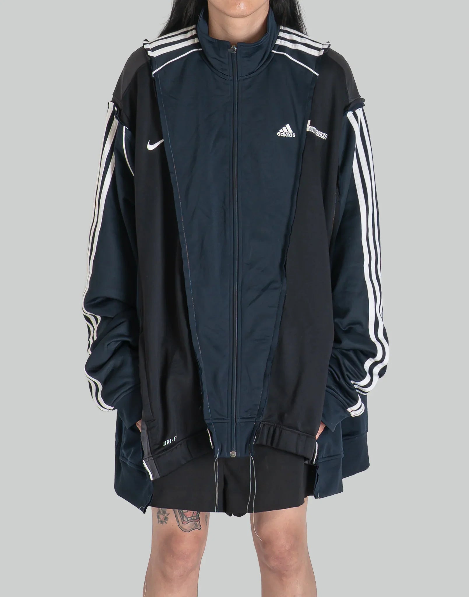 COLOR : AssortSIZE : OSMETERIAL : 100% POLYESTEROS 기장 69 어깨 너비 92 가슴둘레 152 소매길이 64 (cm)Model is 171cm / 54kg and wears size OS.DC-NS-BL-02-062장의 다른 트랙 jkt를 해체 후 재구축한 도킹 JKT. 와이드한 실루엣과 다른 콘트라스트가 즐거운 아이템.