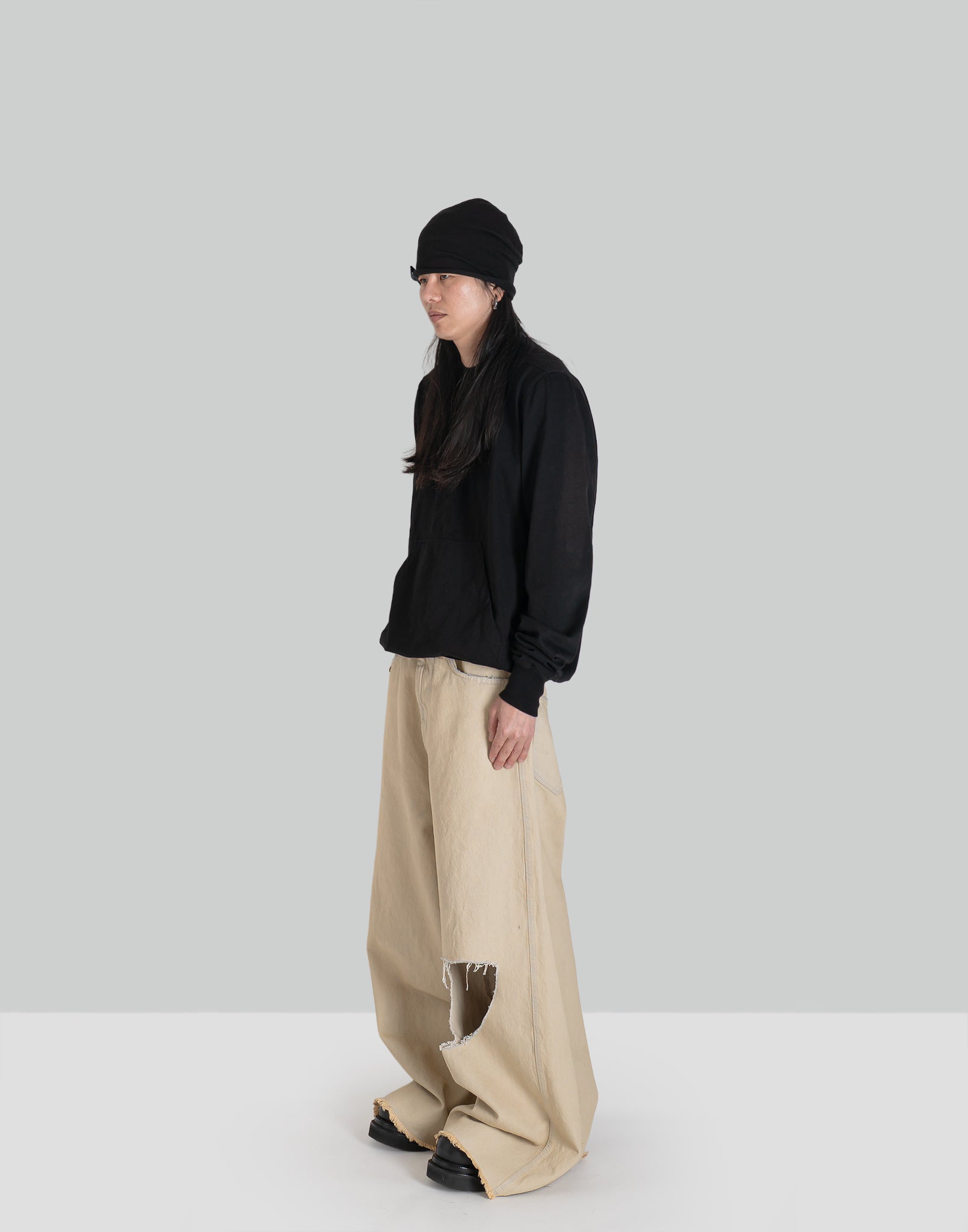 COLOR : BlackSIZE : 28, 30MATERIAL : 100% CELLULOSE28 허리 85 밑위 79 총길이 110 허벅지 너비 3730 허리 90 밑위 79 총길이 110 허벅지 너비 39 (cm)Model is 171cm / 54kg and wears size 28.A23486-068XJ-02