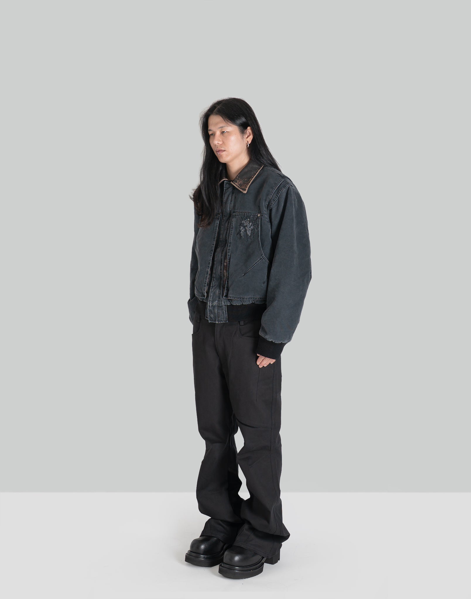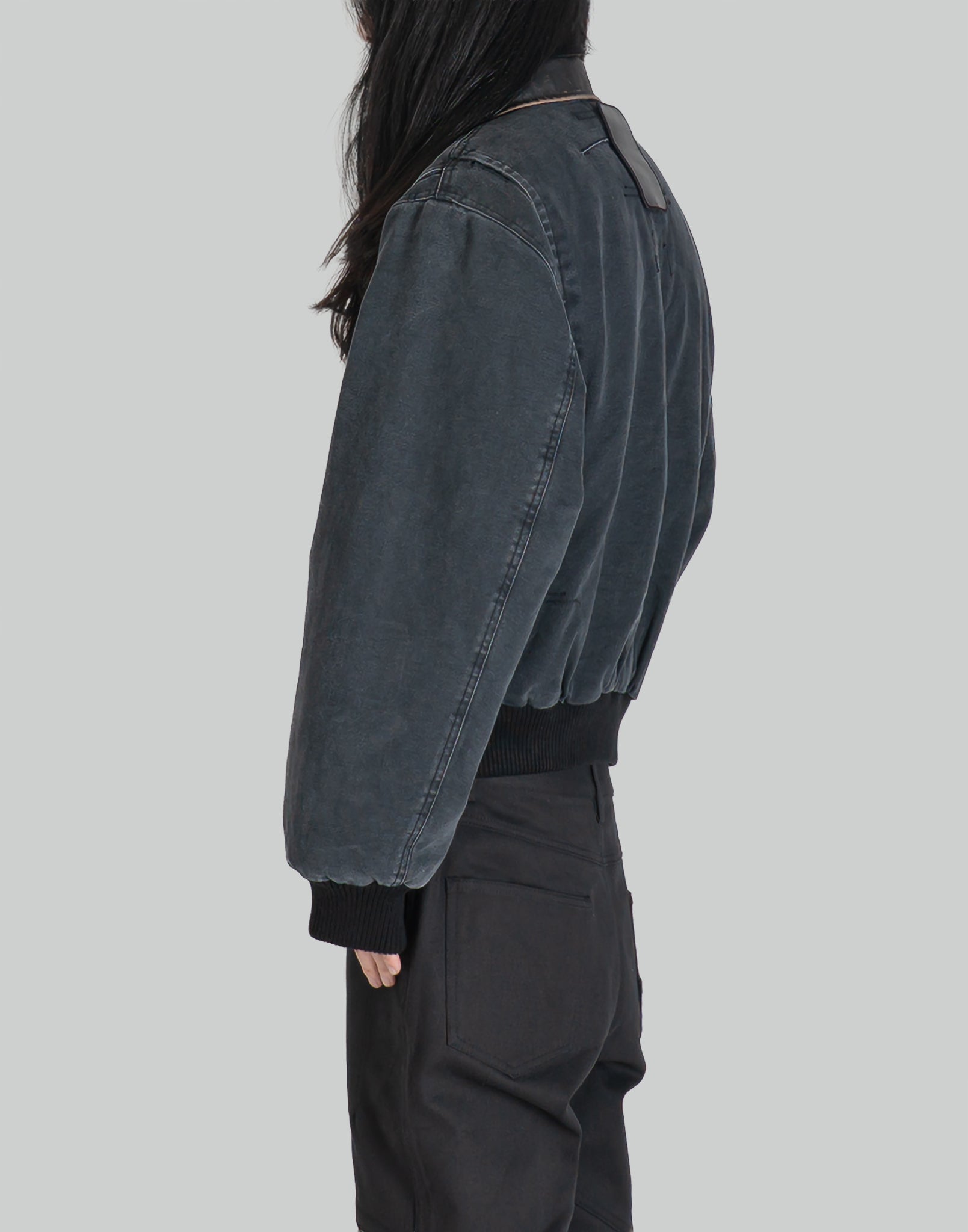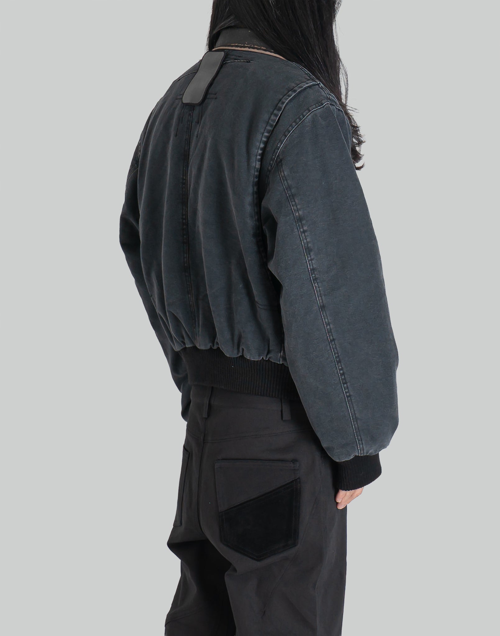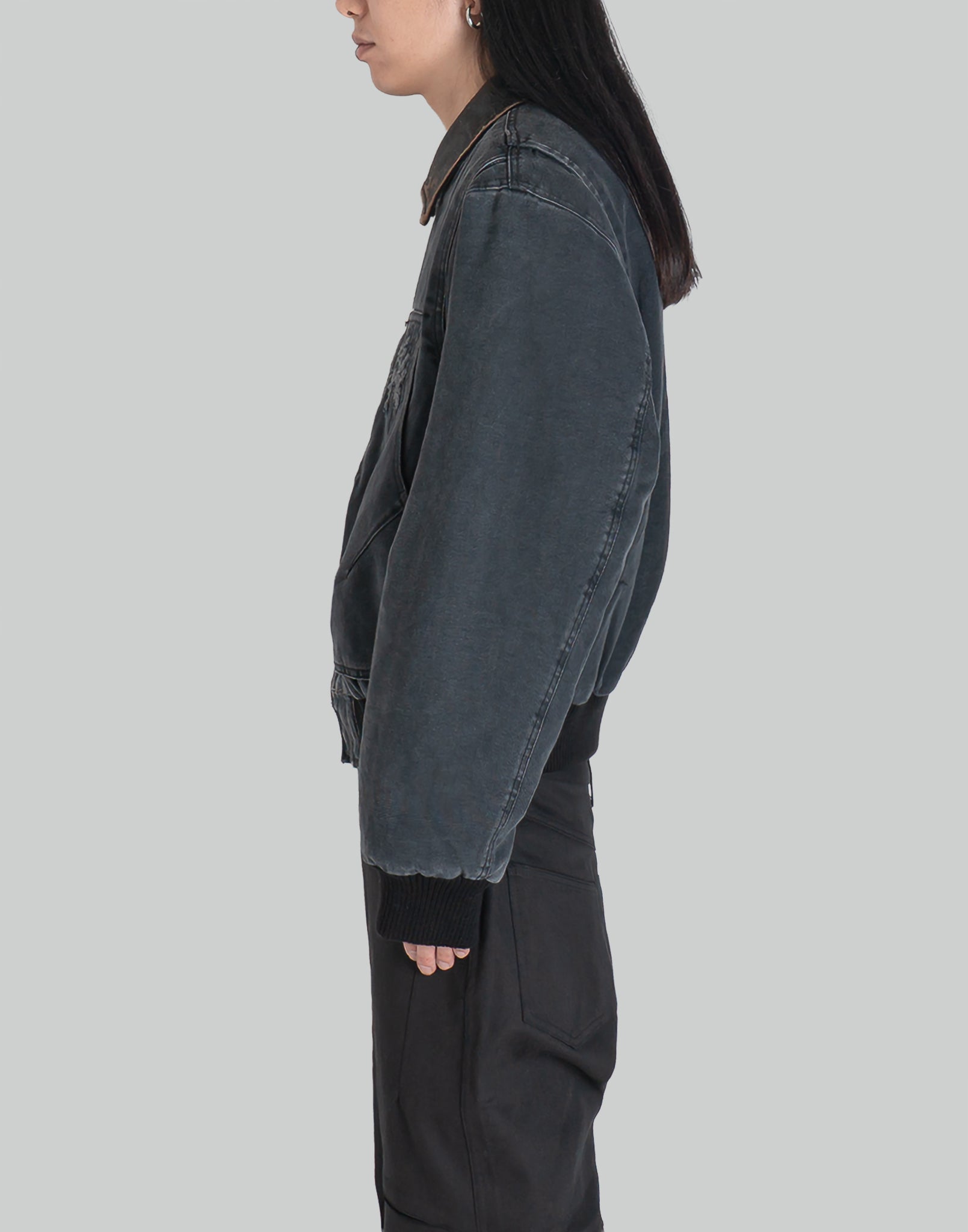 COLOR : BlackSIZE : M, LMETERIAL : 100% COTTON / REAL LEATHER / 100% NYLONM 기장 69 가슴둘레 124 소매길이 89L 기장 71 가슴둘레 128 소매길이 92 (cm)Model is 171cm / 54kg and wears size M.
